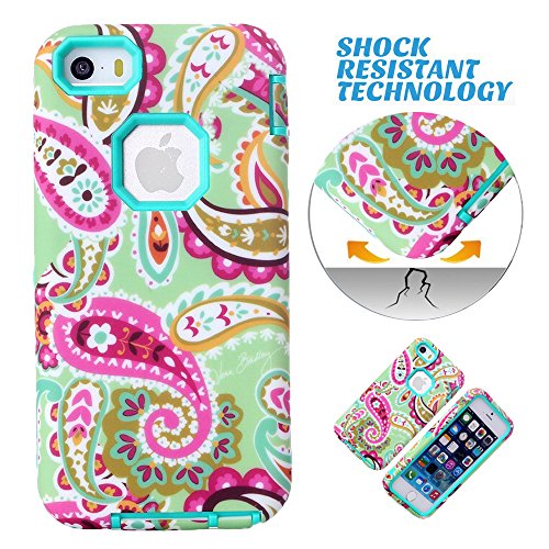 iPhone 5C Case, iPhone 5C Back Cover, MagicSky iPhone 5C Cases Plastic + TPU Paisley Flower Pattern Tuff Dual Layer Hybrid Armor Case for Apple iPhone 5C - 1 Pack - Retail Packaging - Cyan