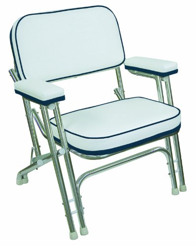 The Wise Company Part#: 8WD120AB-924 085211786967 - Wise Folding Deck Chair with Aluminum Frame, White/Navy