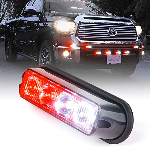 Xprite White & Red 4 LED 4 Watt Emergency Vehicle Waterproof Surface Mount Deck Dash Grille Strobe Light Warning Police Light Head with Clear Lens